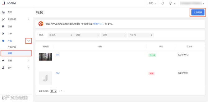⚠️请注意:只有Top店铺可使用此功能。您只能为Top店铺的产品上传视频。