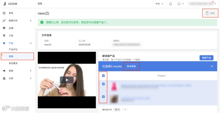 - 如果产品视频没有问题,视频状态将变为已批准,您才能链接产品。