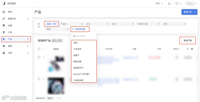 导读:产品筛选功能可以帮助您在后台快速查找并导出产品。
