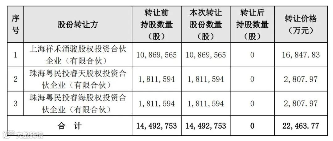 此次交易前,前海弘盛持股为52.405%,旺合大赢持股为26.2025%,祥禾涌骏持股为9.4937%,盈合创赢持股为8.7342%,睿天投资、睿海投资分别持股为1.5823%。