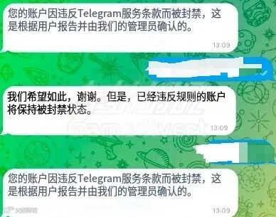 如果你因发送广告、辱骂、暴力内容、欺诈等原因被多次举报,Telegram可能会冻结你的账号。