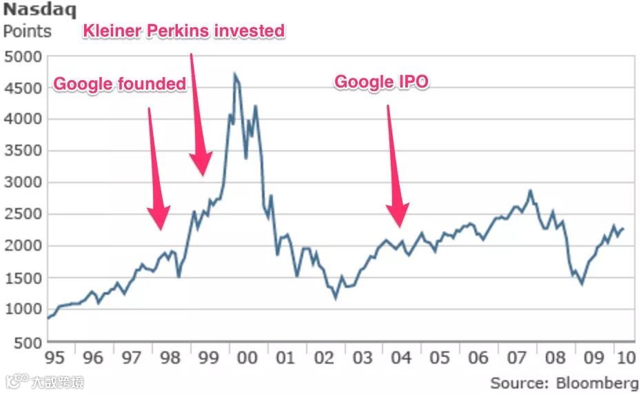 谷歌在Kleiner Perkins Caufield & Byers的帮助下,经历了互联网泡沫的破灭。即使在市场暴跌的情况下,后者仍然坚持早期投资。