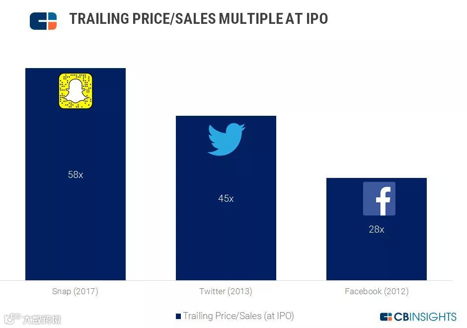 事后来看,Facebook进行IPO时的估值是非常便宜的,尤其是与后来的Twitter和Snap相比。