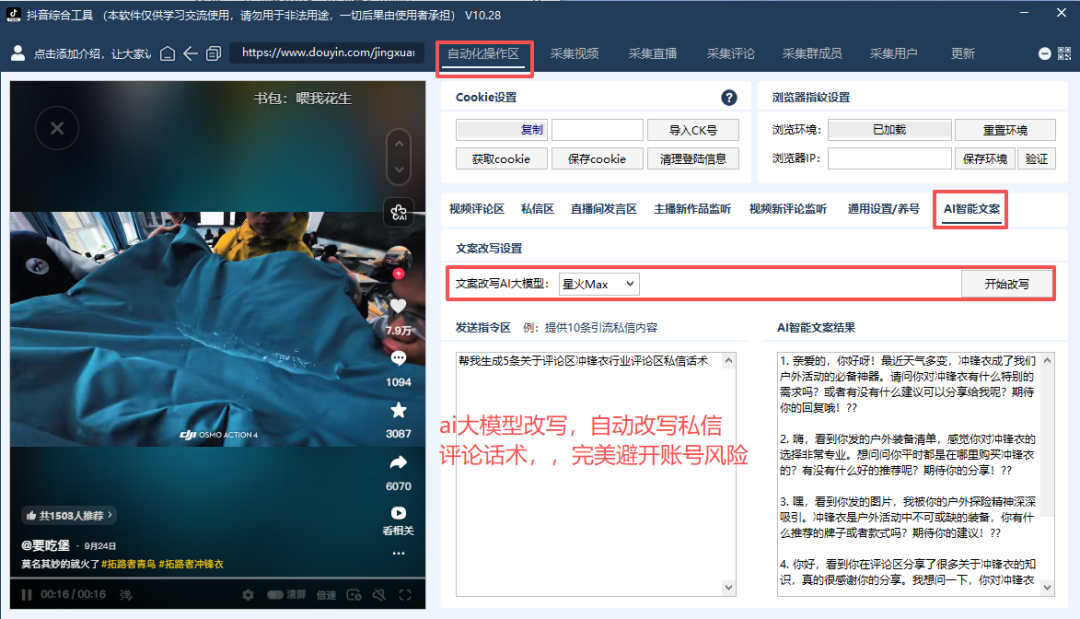 1、视频操作区(评论、点赞、收藏、发送图片)留痕