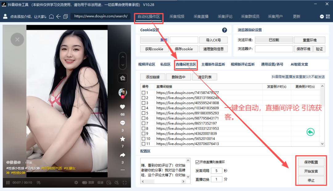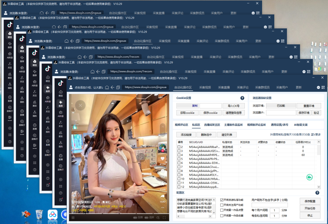功能点二:全自动无限私信区(批量私信用户,批量关注)