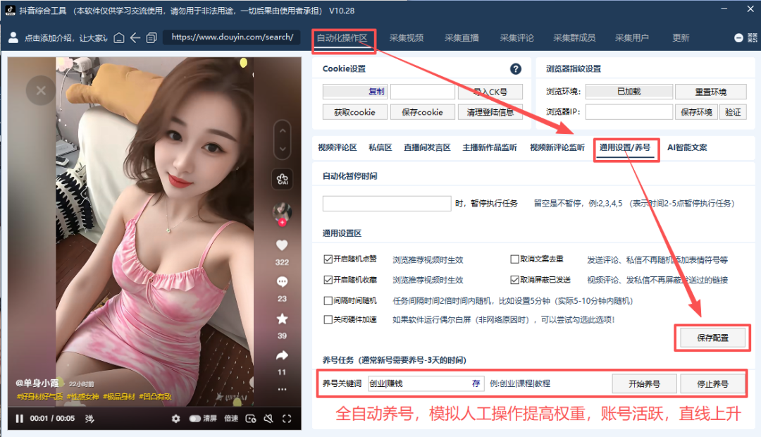 功能点九:全自动养号(每日必做,可通过关键词养号,提高账号权重!)
