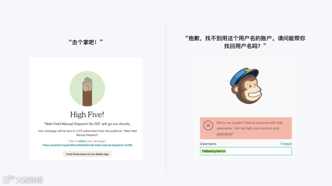 Mailchimp 在不同场景下的文案体现语气差异