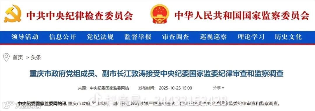 2025年10月25日,中央纪委国家监委网站的一则通报打破了政坛的平静:重庆市政府党组成员、副市长江敦涛涉嫌严重违纪违法,正接受纪律审查和监察调查。这个消息让许多熟悉他的人唏嘘不已——这位曾被冠以"李云龙式干部"称号、以敢打硬仗著称的官员,终究没能守住权力的底线,从跨越"隐形台阶"的实干者沦为违纪违法的被调查者。