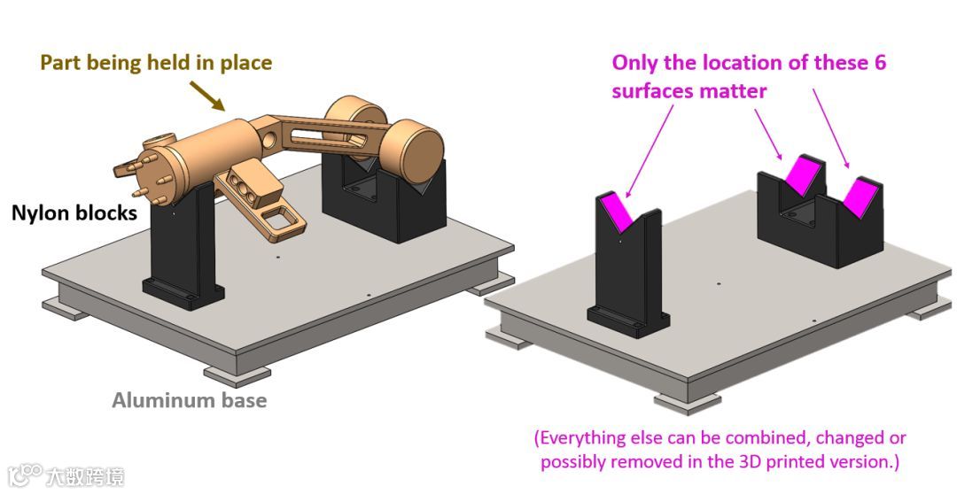 jig则主要用于定位与导向,通过仿形、导向孔、V型座、定位销等结构确保每个零件放置位置一致,从而保证加工精度[k]。