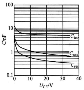 图中我们可以看到,输入电容Cies远大于输出电容Coes,这主要是反馈电容Cres较大所导致的。