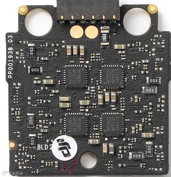 IMU为惯性测量单元,通常包含3轴加速度计、3轴角速度计、磁力计;用来测量无人机在三维空间中的角速度和加速度,解算出无人机的飞行姿态,磁力计用来测试磁场强度和方向,定位无人机的飞行方向,与指南针原理类似;注意IMU是对强磁场环境比较敏感的器件,PCBA布局需远离大电流路径,IMU存在零偏,并且会受环境因素的影响产生变化,设计上会给IMU增加恒温槽,且有加热电路,将IMU的工作温度恒定在某个值。