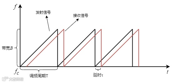 无人机的FMCW 雷达可以测距、测角,测速。连续发射调频信号以实现距离,速度,角度的数据测量,FMCW雷达信号的频率随时间变化呈线性升高。接受信号与发射信号混频后的中频信号,对于选定的系统,中频信号是恒定值。