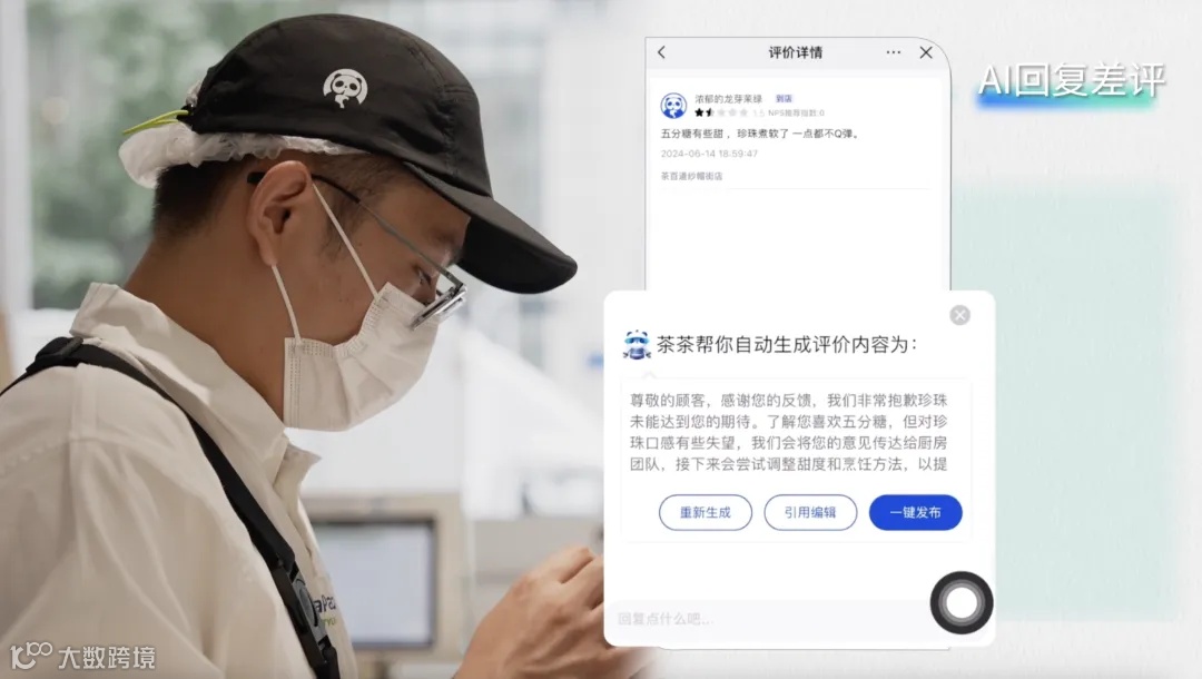 茶百道数字化产品经理许康达也在持续探索,AI加持下,如何更好地利用飞书服务伙伴,把店铺经营好。