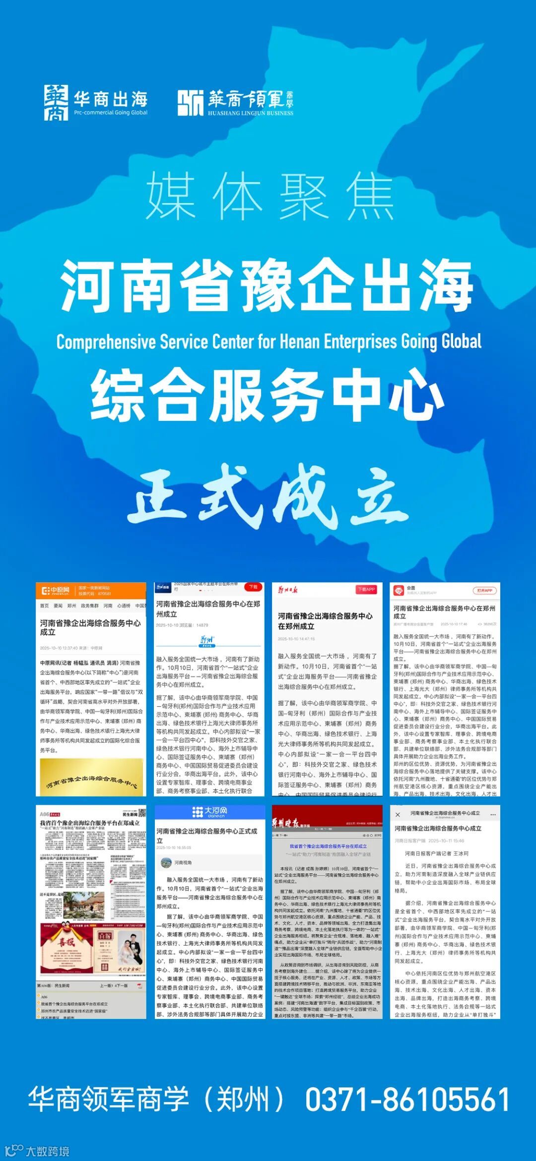 河南日报、中原网、郑州日报、大河网等多家媒体争相报道河南省豫企出海综合服务中心正式成立