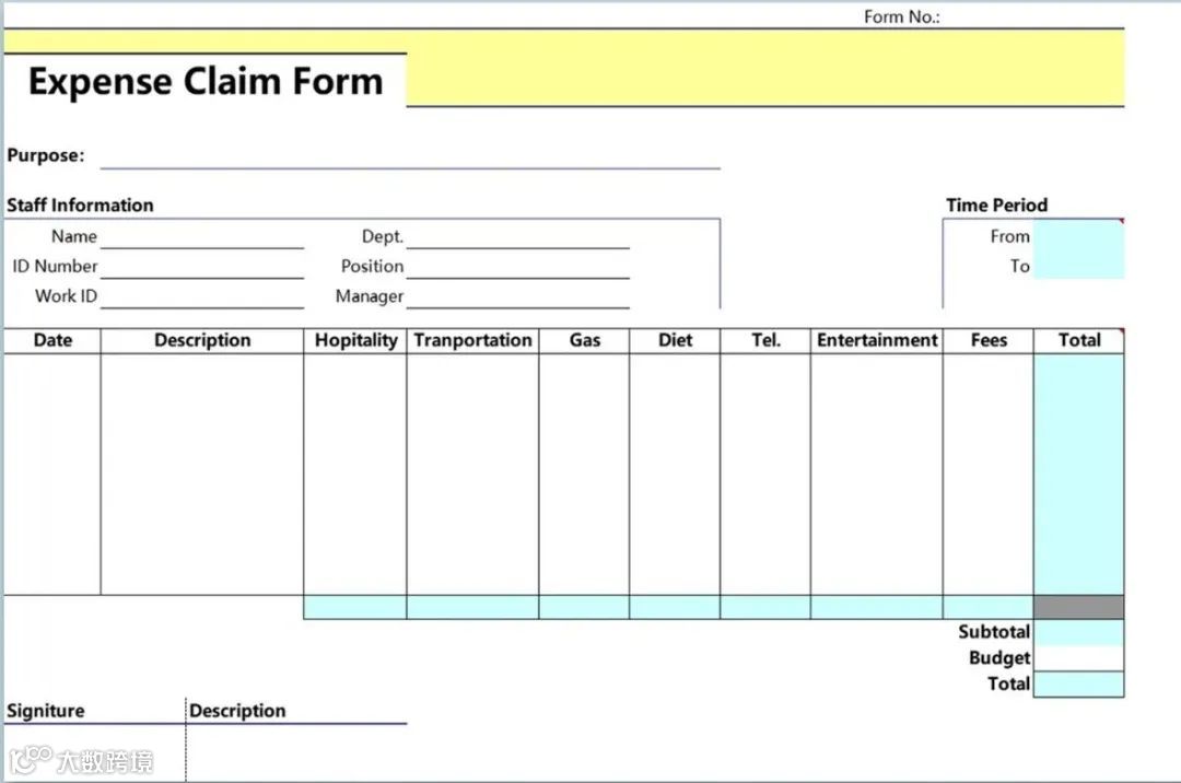 相应地,“Expense Claim Form”是比“Reimbursement Claim Form”更常见的报销表名称[k]。