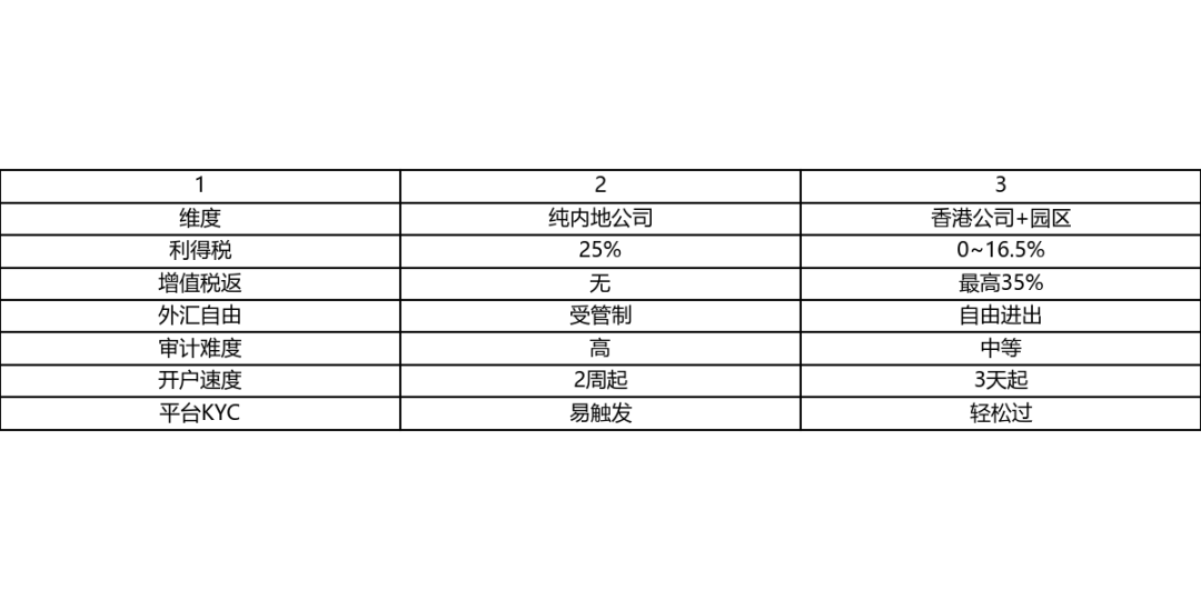 · 香港利润合规回到内地,再进园区,两层结构,利润多留30%。