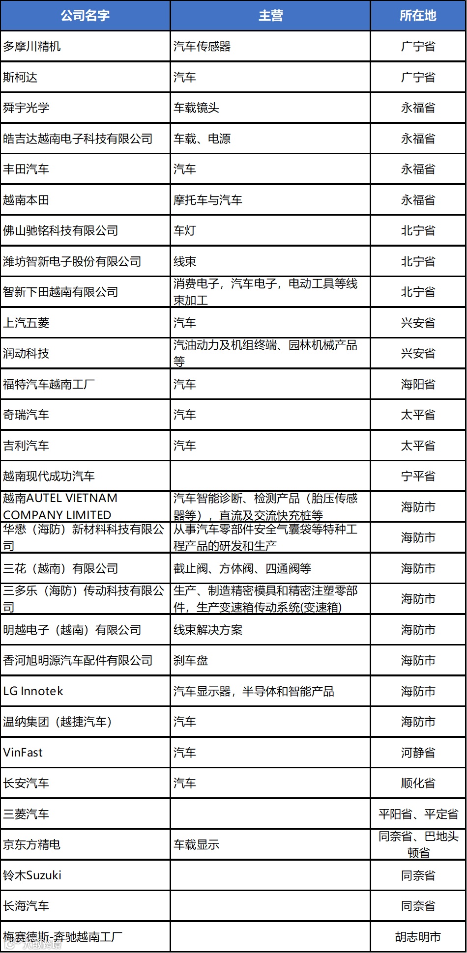 越南建厂:汽车电子及零部件