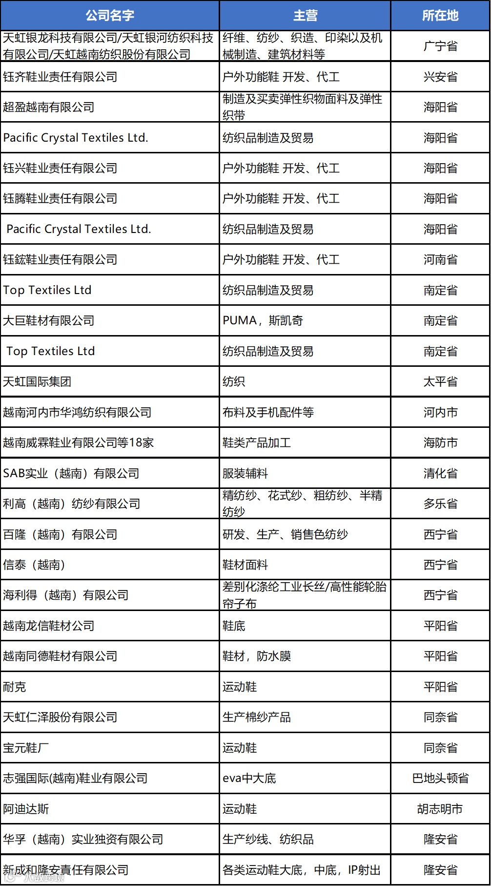越南建厂:纺织服装与鞋材