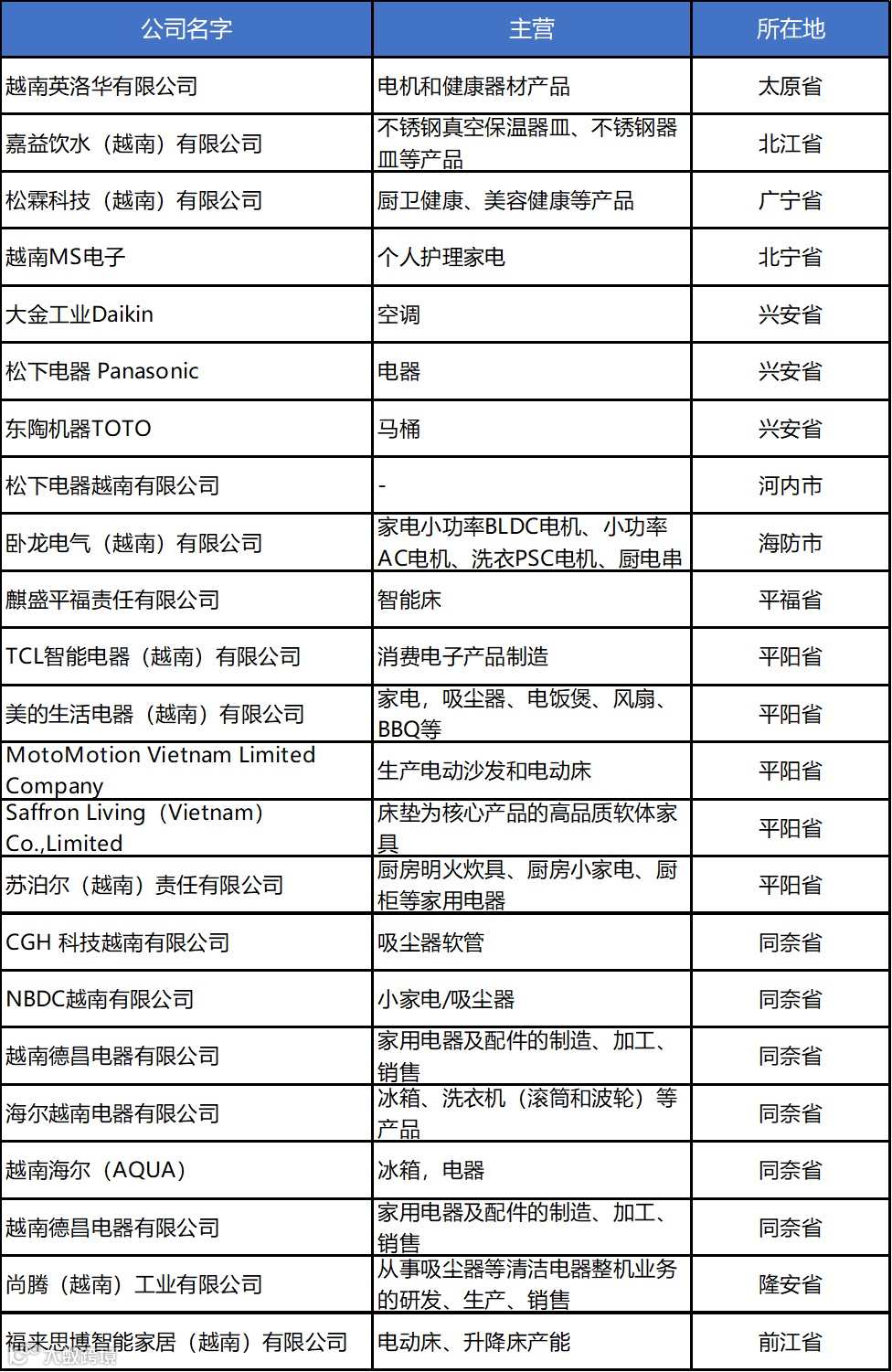 越南建厂:家电与家居产品