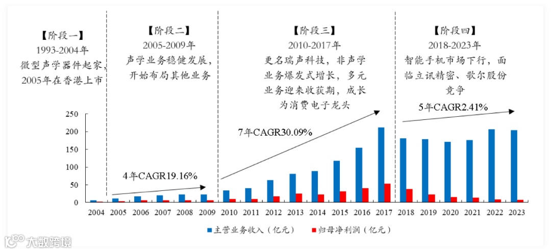 1993年瑞声科技于在深圳成立,开启自研自产微型声学器件之路。 -