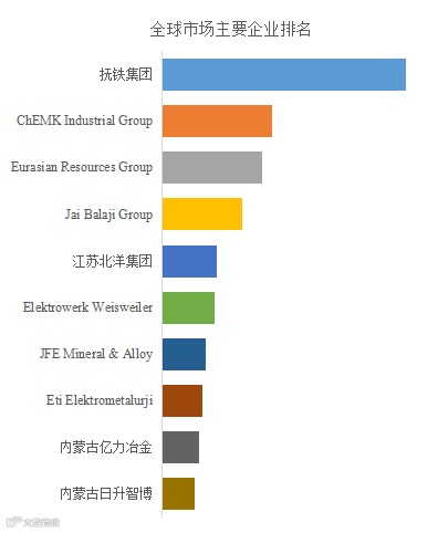 全球范围内,低碳铬铁主要生产商包括抚铁集团、ChEMK Industrial Group、Eurasian Resources Group、Jai Balaji Group等,其中前三大厂商占有35%的市场份额。