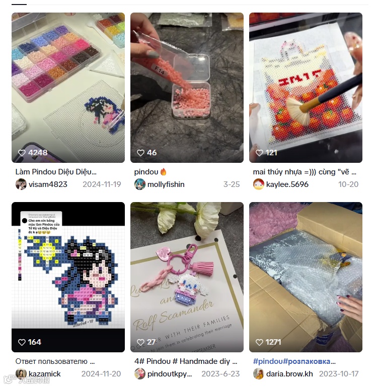 TikTok上,不少人也加入了拼豆行列,创作者们通过短视频展示拼豆的制作过程,从用镊子将彩色豆子排列在特制塑料板上,到盖上熨烫纸用熨斗加热定型,