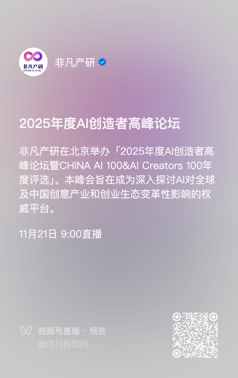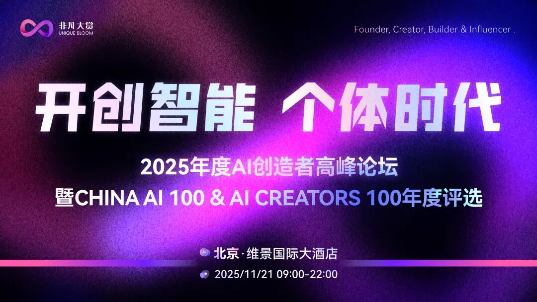 📍主题:「2025年度AI创造者高峰论坛暨CHINA AI 100 & AI Creators 100年度评选」