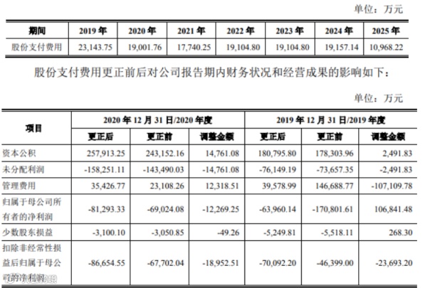 2021年9月21日,公司第一届董事会第十一次会议审议通过了《关于审议公司会计差错更正的专项说明的议案》。公司将股份支付费用由原来的授予日一次性确认,变更为在估计的等待期内分期摊销,并对公司2019年度、2020年度股份支付费用进行了追溯调整。该会计调整是公司结合财政部最新《应用案例》,对股权激励方案相关条款进行补充解释后做出的,符合《企业会计准则第28号——会计政策、会计估计变更和会计差错更正》的规定,属于特殊会计判断事项,不构成因公司会计基础工作薄弱、内控不完善等原因导致的差错更正。