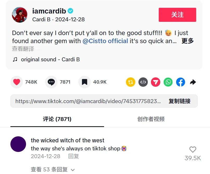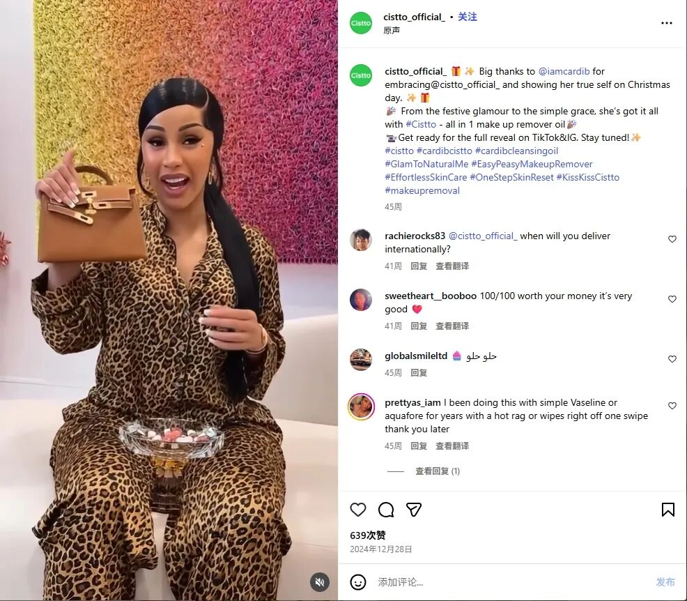 Cistto × Cardi B的合作案例证明:只要策略精准、内容真实,中国品牌完全有能力在全球社交媒体的浪潮中,讲好自己的品牌故事。