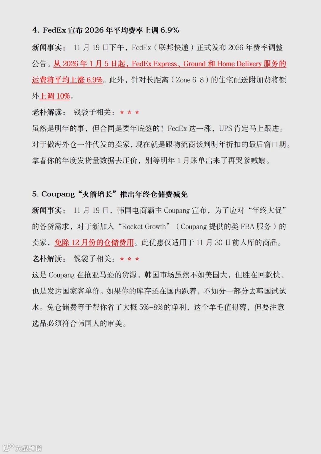 如果这还不够让你焦虑,FedEx又来补了一刀:2026年涨价6.9%。