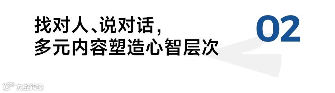 而“定心智”和“说对话”的关键,在于“抢大占小”,对行业特色人群讲透商品功能心智;对圈层人群打造场景心智,激发需求,提高共鸣;对泛人群传递品牌心智和价值观,激发兴趣。