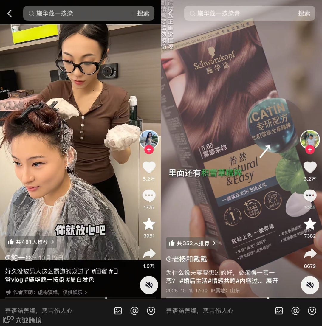 施华蔻首先以 “专业美发” 强化品牌心智。聚焦美护发人群的内容偏好,通过强故事性的生活日常 、使用体验、 剧情演绎等内容形式,快速吸引目标人群关注,激发内容爆文潜力。