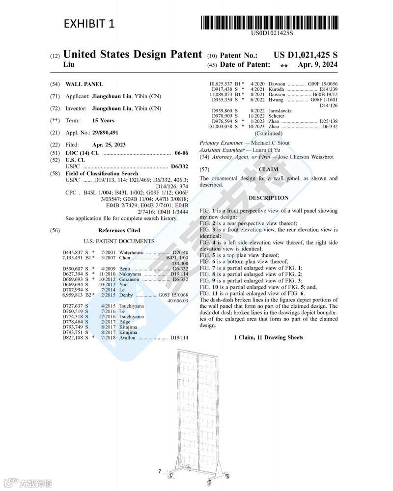 本案是12月底的一起国人匿名专利案件,前期案件一直处于匿名且密封状态,直至近期各卖家纷纷收到账户被冻结,案件信息才逐渐浮出真面目,涉案专利为一款专利号为:D1021425 S的墙板装饰设计,该专利于2024年4月取得美国专利证书。目前涉案的123个店铺已被TRO冻结,需要名单的朋友可以联系我们获取!已被TRO冻结的卖家也不许慌张,可联系我们提供免费法律咨询,为您提供最佳解决方案!