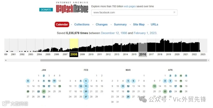 2. Wayback Machine:访问http://wayback.archive.org/,追溯网站历史版本,了解客户入行时间、产品线变更及网站运营持续性[k]。