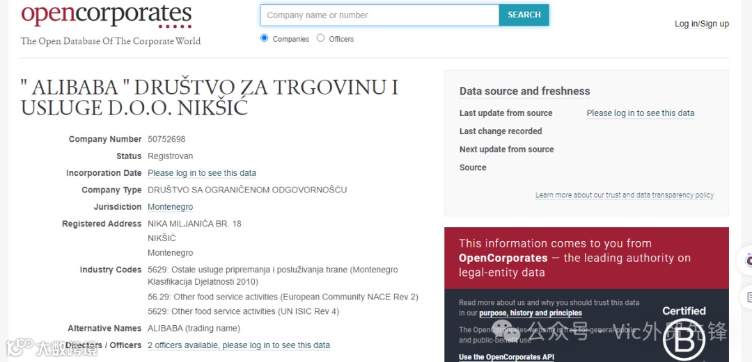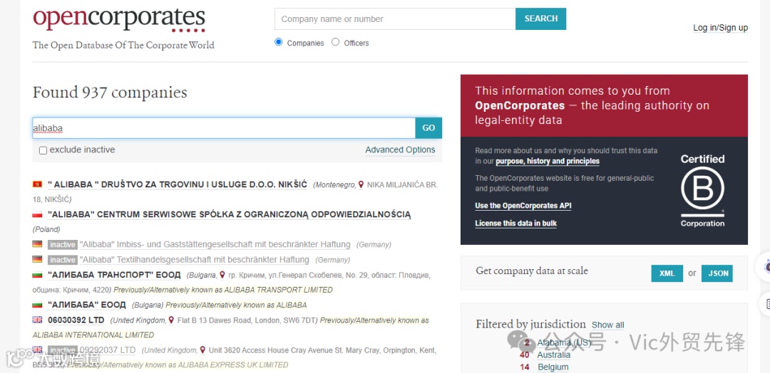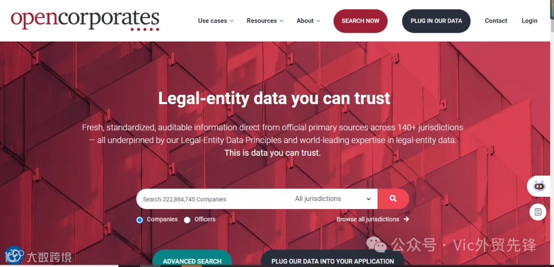 访问https://opencorporates.com/,查询覆盖200多个国家的1.7亿家企业信息,包括注册资料、财务公告、高层变动、投融资记录等。所有数据来源公开透明,支持API接入,适用于企业尽调与合规审查[k]。
