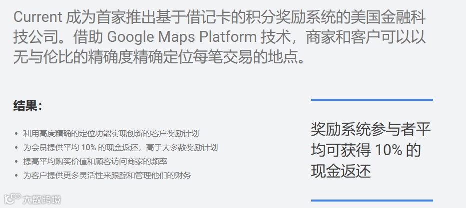 “对于任何希望为客户提供更优质服务并深入了解其消费和储蓄模式的银行而言,准确的地理空间信息都至关重要。我们与 Google Maps Platform 的集成是我们的主要优势,为我们的银行客户和合作商户带来了巨大的价值。”— Trevor Marshall,Current 首席技术官