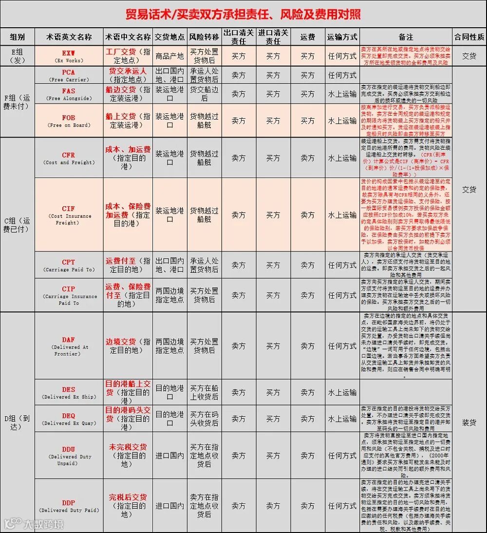 常见的贸易术语(交易方式)