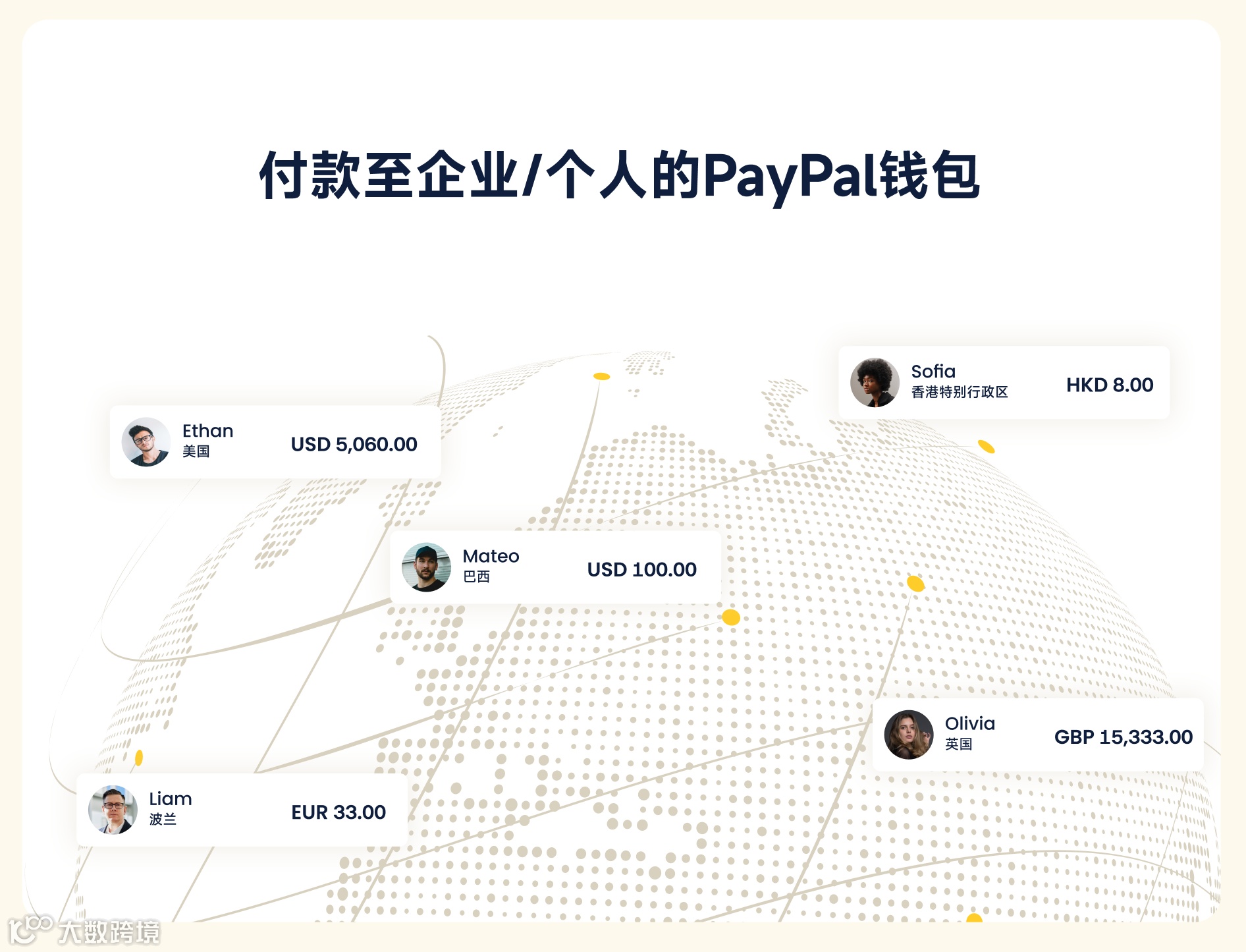 PhotonPay光子易现已支持企业通过平台,使用USD、EUR、HKD等主流币种,直接向覆盖68个国家和地区的企业或个人PayPal钱包付款。