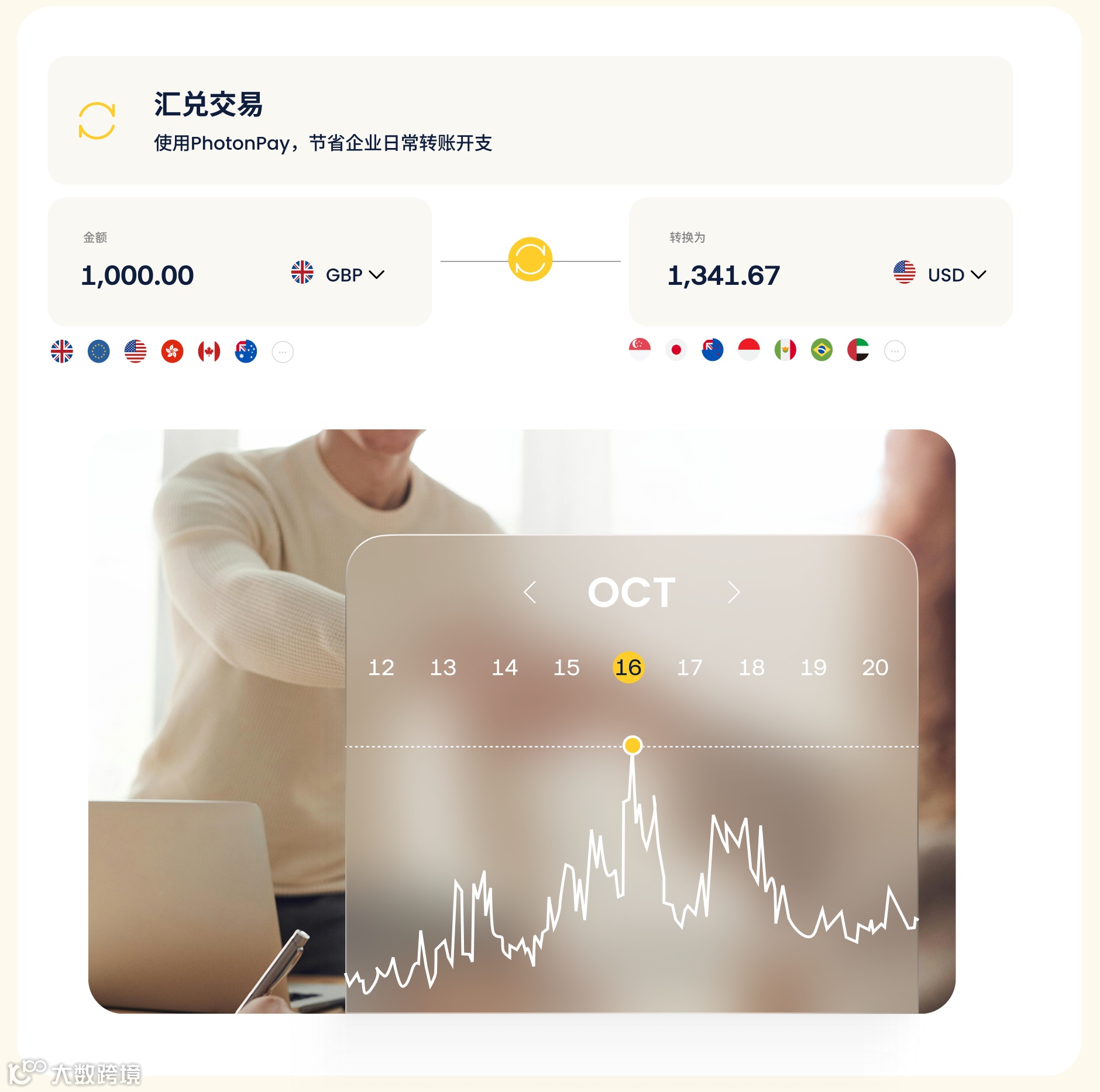 通过PhotonPay光子易平台,企业可以实时查询外汇牌价,并基于银行间实时汇率进行全天候换汇。基于AI技术打造的换汇引擎,能够监测并预测汇率走势,帮助商户锁定最优汇率窗口。