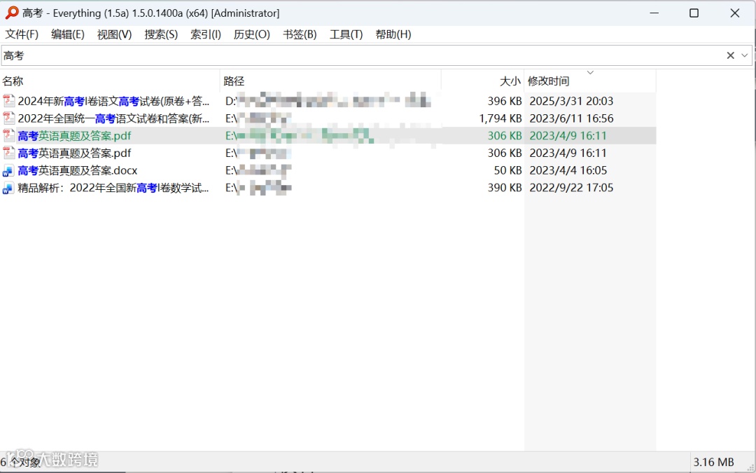 用之前推荐的绿色版Everything绿色版,打包成了单文件版。