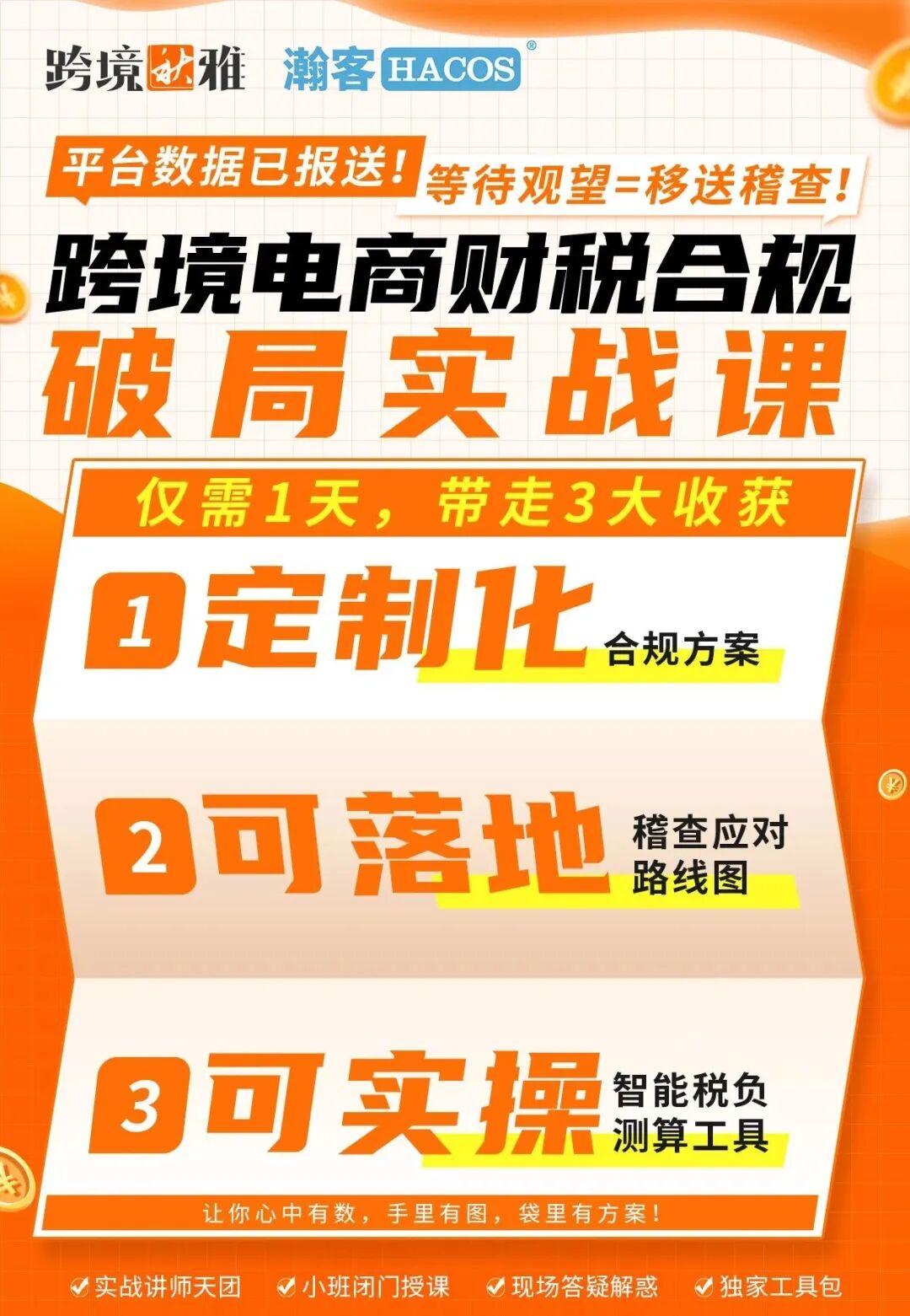 别慌!《跨境电商财税合规破局实战课》来了。一天时间,带你构建财税“安全屋”、化解稽查风险、搞定税负平衡。