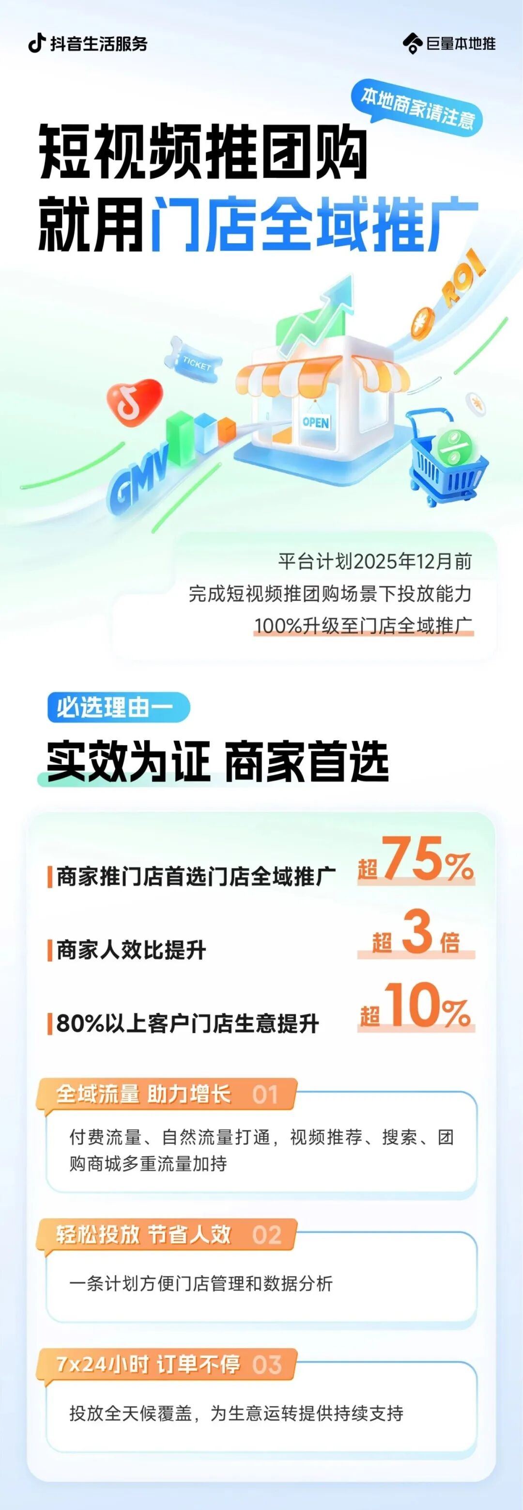 巨量本地推重磅推出的 「门店全域推广」 ,正是为您破解这些难题的一站式解决方案!它打破付费与自然流量的壁垒,以门店整体ROI为核心,智能撬动全域流量,让“投流”变“引流”,轻松实现生意规模倍增。