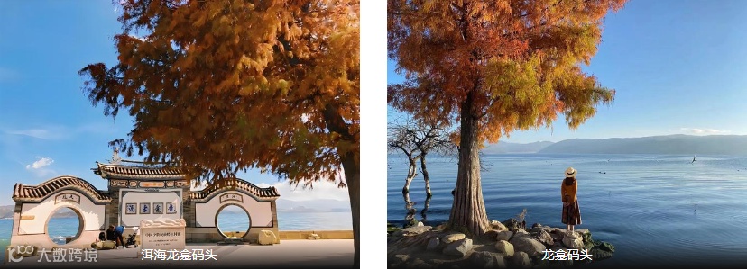 【龙龛码头】(打卡约30分钟)龙龛码头是一个洱海的其中一个渡口,可以借用标志建筑“龙龛古渡 ”牌坊拍摄洱海美景,冬天的时候水中那几棵笔直挺拔、倚水而立红艳似火的水杉,也超出片。