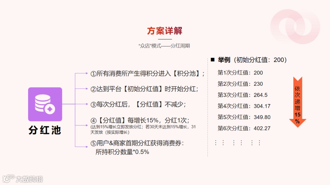 3. 动态分润:不用等 “画饼”,每新增 15% 消费利润就分一次润,最多分 36 次 / 笔;就算没达标,每 30 天强制分润,最多分 40 次 / 笔,保证用户能拿到返利。