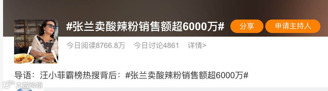 据飞瓜数据显示,2022年11月23日,张兰直播间观看人次飙升至2702万。在直播间里销售的产品既有酸辣粉、肉香肠,还有“绿茶+卤蛋+软饭”这样的话题套餐。有网友说,自己原本进入直播间只是为了吃瓜的,没想到却为八卦欲买了单。当晚仅是酸辣粉的销售额便超6000万。