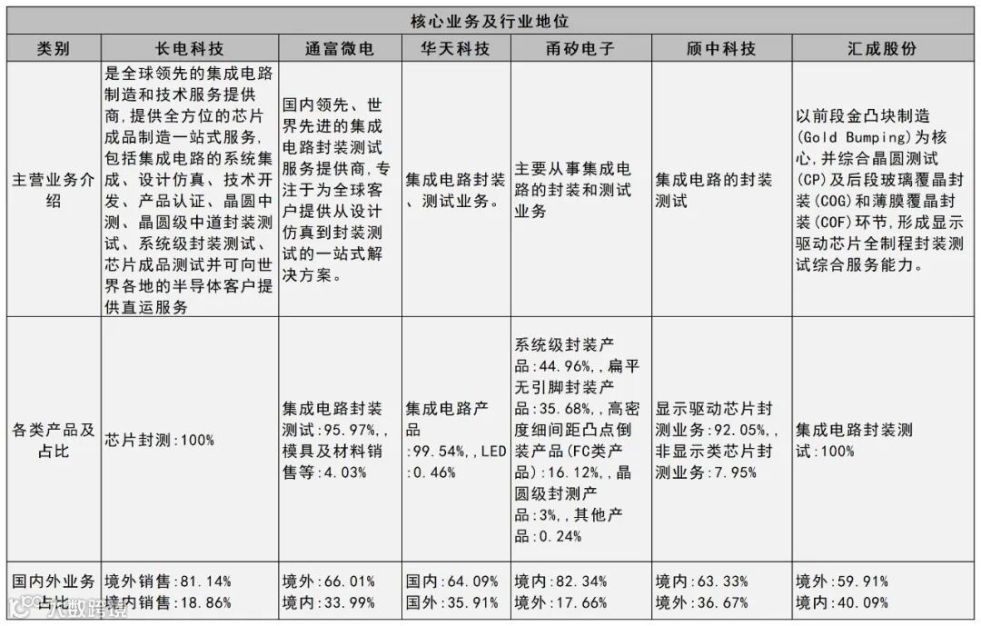 长电科技和通富微电业务覆盖全面,提供从设计仿真到封装测试的一站式服务;华天科技和甬矽电子专注于封装测试业务;颀中科技和汇成股份则更聚焦于显示驱动芯片封测领域。