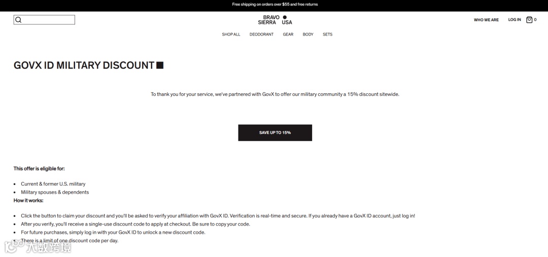 在独立站官网上,品牌为军人及其家属提供专属折扣,增强了用户归属感。