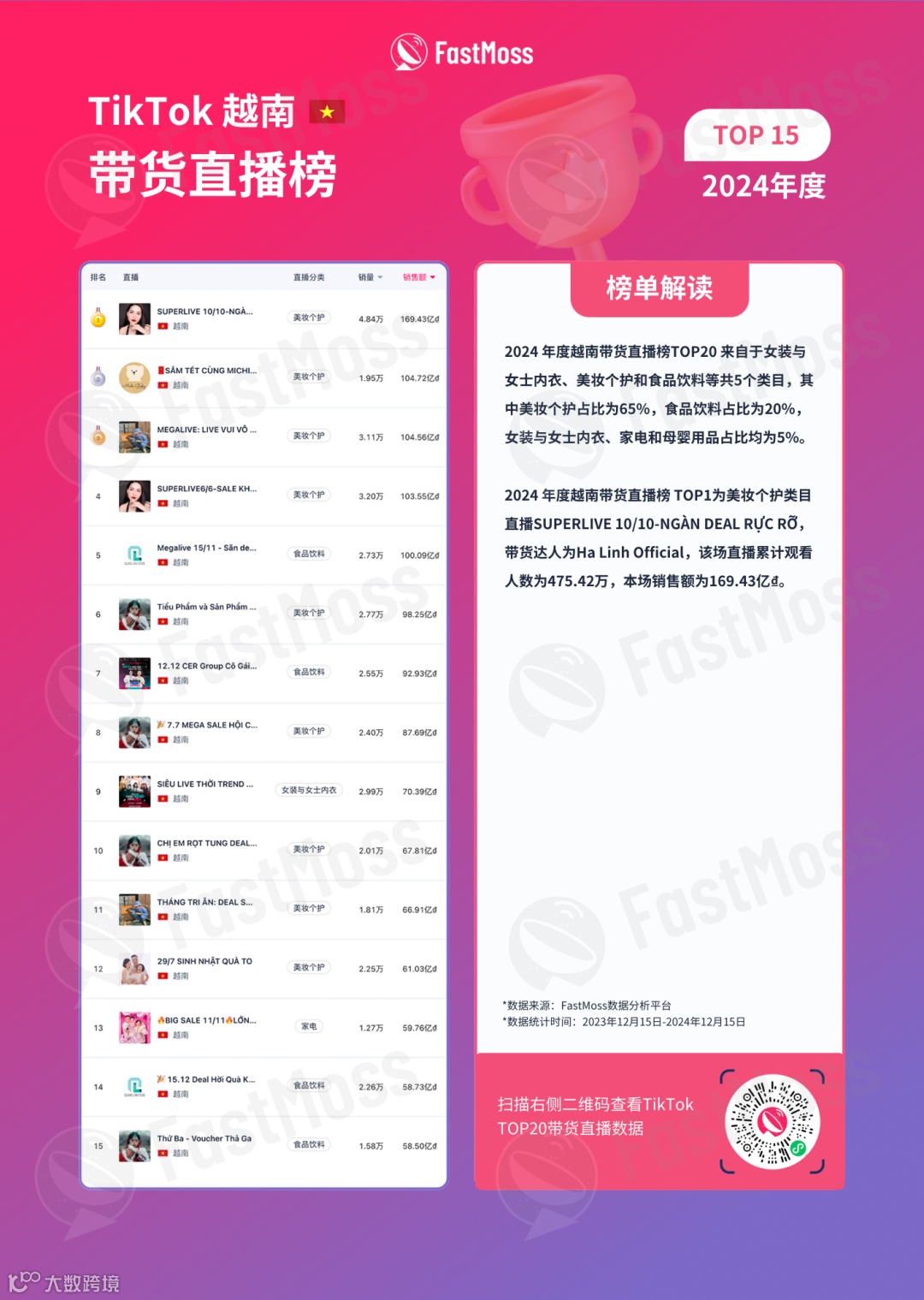 东南亚市场表现出强劲的增长潜力。2024年上半年某天,泰国站单日GMV首次突破2000万美元,超过印尼站成绩。越南头部带货达人@halinhofficial在6.6大促期间短短四小时内销售额超400万美元。