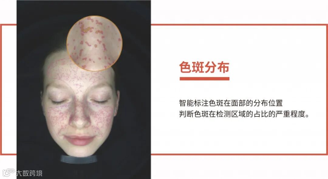 识别面部色斑分布以及面积,并通过极化图、棕色图、黑白图、色斑趋势图进行具象化体现