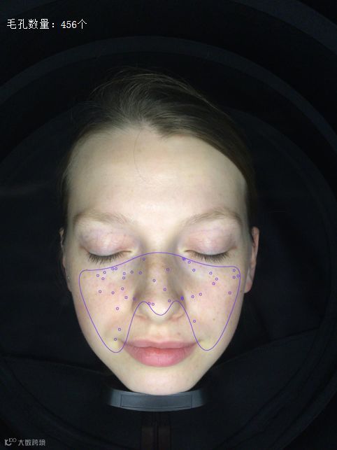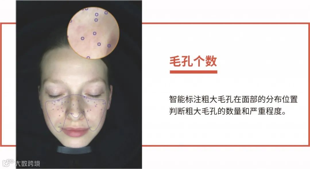 智能标注粗大毛孔在面部的分布位置,判断粗大毛孔的数量和严重程度。